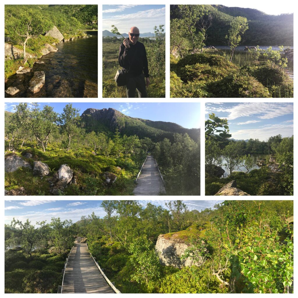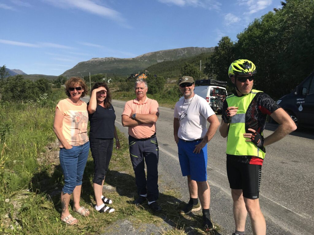 Staan ergens langs de kant nog even te genieten van het uitzicht en een broodje te eten, komt er een Caddy aan rijden en toetert en gelijk stoppen ze, stappen uit en komen naar ons toe lopen. Blijken het de mensen (Noren uit Oslo) te zijn welke we nu voor de 3e keer tegenkomen. Eerst al bij een ferry, daar hebben we ook met hun staan praten, later nog een keer toeterend op een brug in Saltstraumen en vandaag dus weer. Even later arriveert ook de 2e auto en we maken nog even een praatje. Maken een foto en ze moeten weer gaan om de boot in Andenes nog te halen.