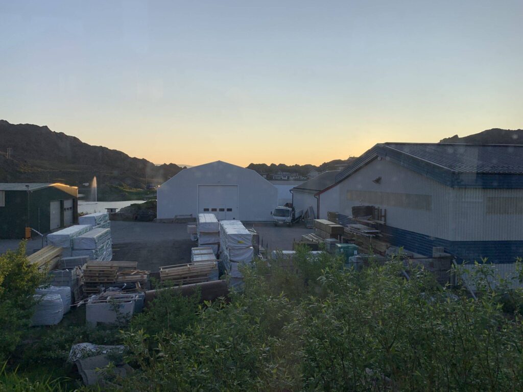 Om 01:37 komen we aan in Honningsvåg rijden langs een hotel om nog wat mensen op te pikken als ze er zijn. Dan wordt op een gegeven moment de bus ergens in een straat geparkeerd en de chauffeur stapt uit en zegt: je kunt gaan slapen de andere chauffeur komt tegen 05:00 uur weer opdagen :-0. En gaat weg. In Nederland ondenkbaar. Hier dus niet.