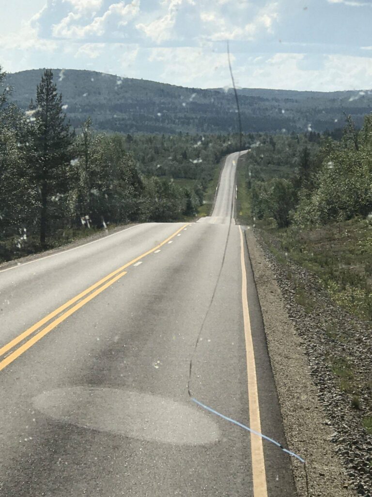 Je mag hier wat harder rijden dan Noorwegen. Daar is de hoogst maximale snelheid wat ik heb gezien 90 km/u en hier in Finland mag je 100km/u.