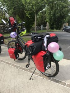 1. Hee… vakantiegangers. Het gaat voorspoedig zo te lezen. Mooie foto’s! Ik hoop dat je met al die balonnen aan je fiets een fijn verjaardagsgevoel hebt gehad! Ik wens jullie mooi fietsweer en leuke paadjes.