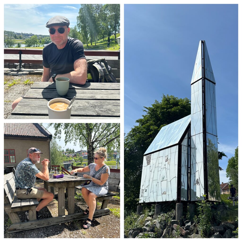 Vanmorgen scheen de zon weer lekker in de camper toen ik wakker werd. Eerst maar even wandelen, daarna lekker mijn brokken eten en de rest genoot nog even van de koffie, terwijl er ook nog even weer een oud vliegtuig de lucht in ging met een boel lawaai. Rond 10:00 uur zijn we vertrokken richting Oslo. Onderweg nog even ergens aan bij een kunstwerk had Henk als verrassing.😁