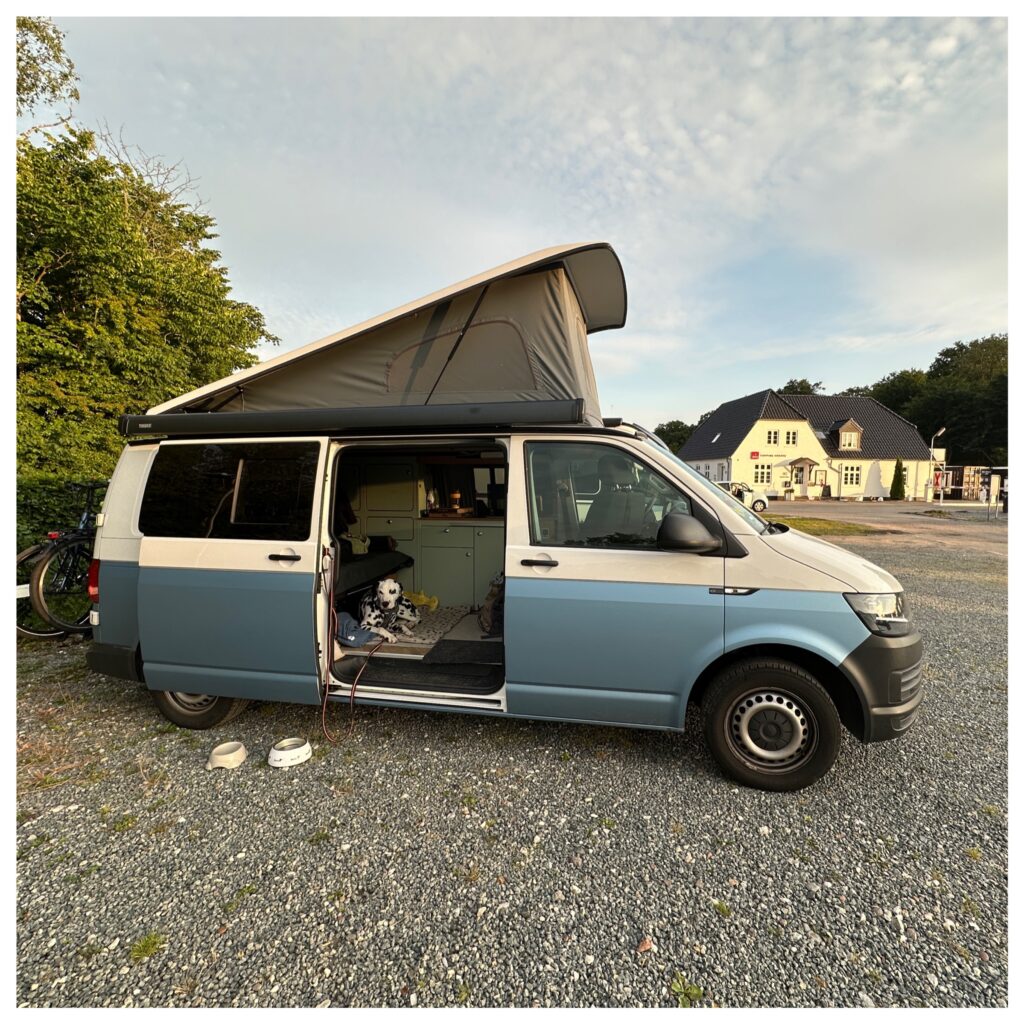 Ook nog wat file rond Kopenhagen gehad en zijn 18:30 in Odense op de camping. Die is gesloten maar we kunnen voor de camping staan en gebruik maken van de faciliteiten en morgenvroeg betalen. Prima gelukkig hebben we een plek en niet zo als gisteren dat we weer verder moeten naar de volgende.
