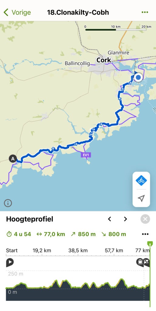 Mooie foto van een prachtige kustlijn. En wat zit je er mooi bij in he koets, geweldig. Fijn dat he niet in de regen hoeft te zitten. Ik vind dat jullie behoorlijke stukken fietsen en dan ook nog klimmetjes. Groetjes en veel plezier allemaal🌺