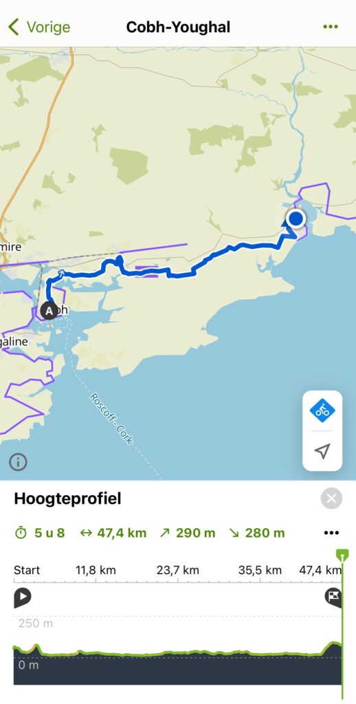 Vanochtend konden we wat uitslapen, want vandaag is het maar 50 km. Het begon weer lekker zonnig. Na alles weer aan de fiets te hebben gehangen en nog een laatste rondje door het huis zijn we vertrokken. En weer met de wind in de rug.