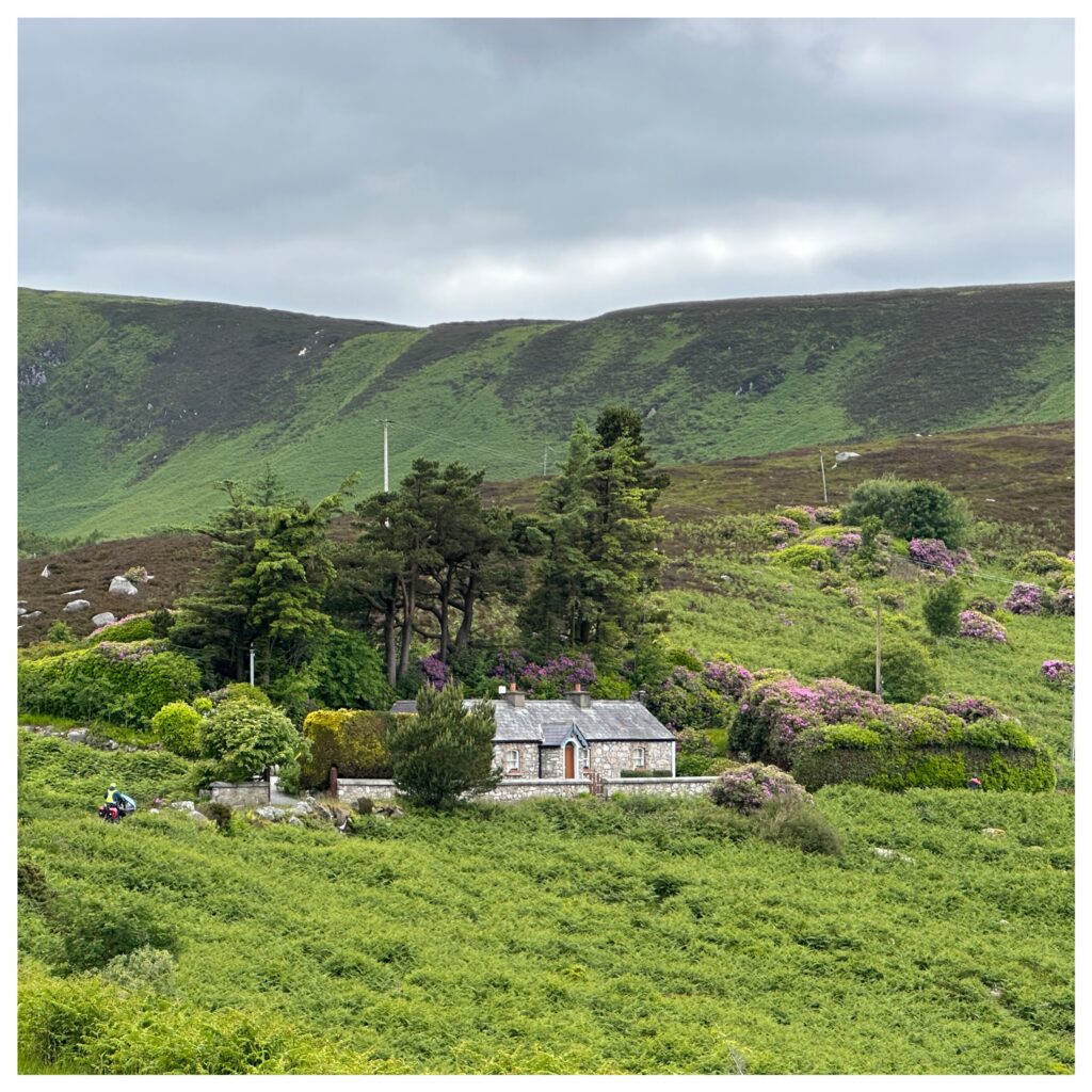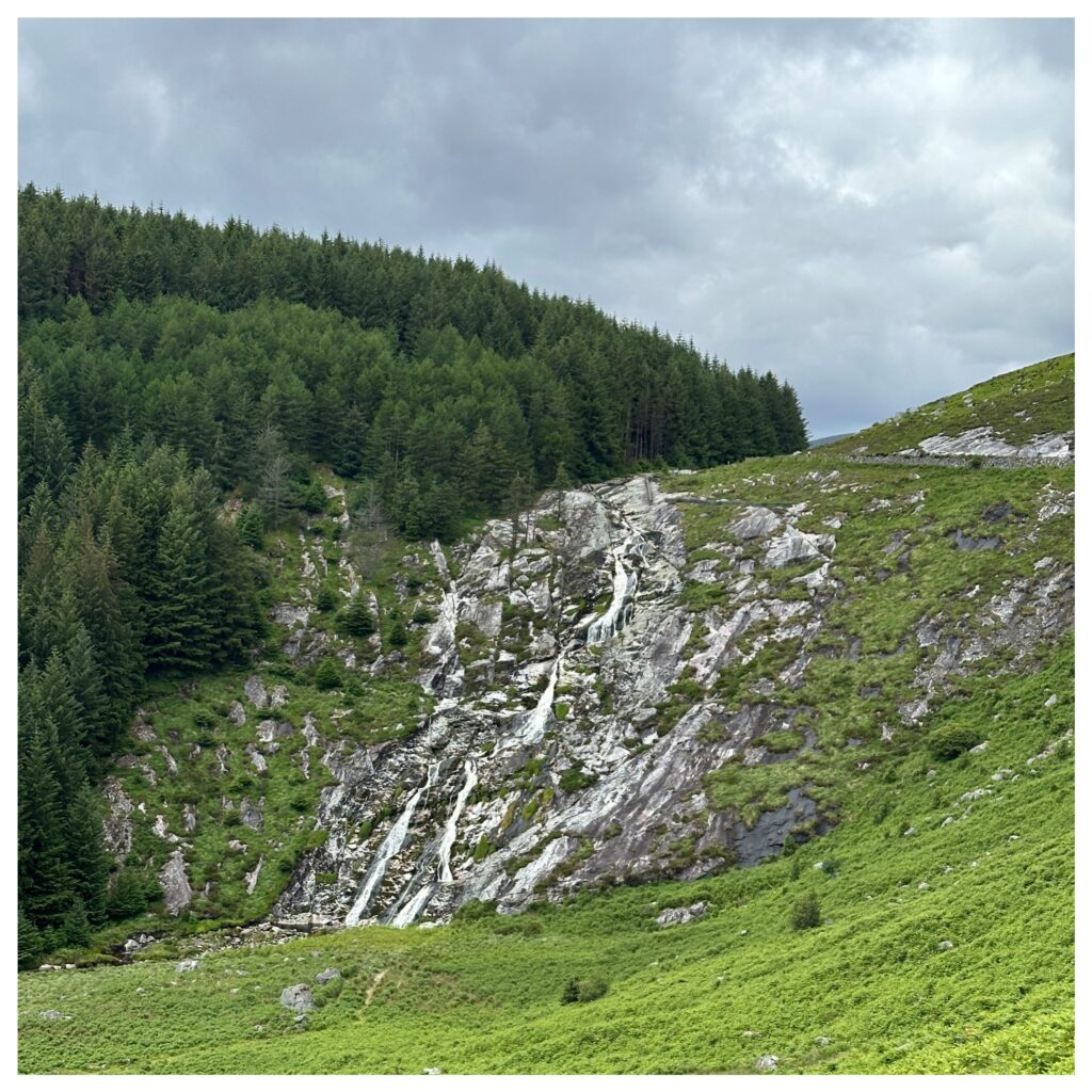 We fietsen door het Wicklow Mountains gedeelte en dat is mooi bosrijk.