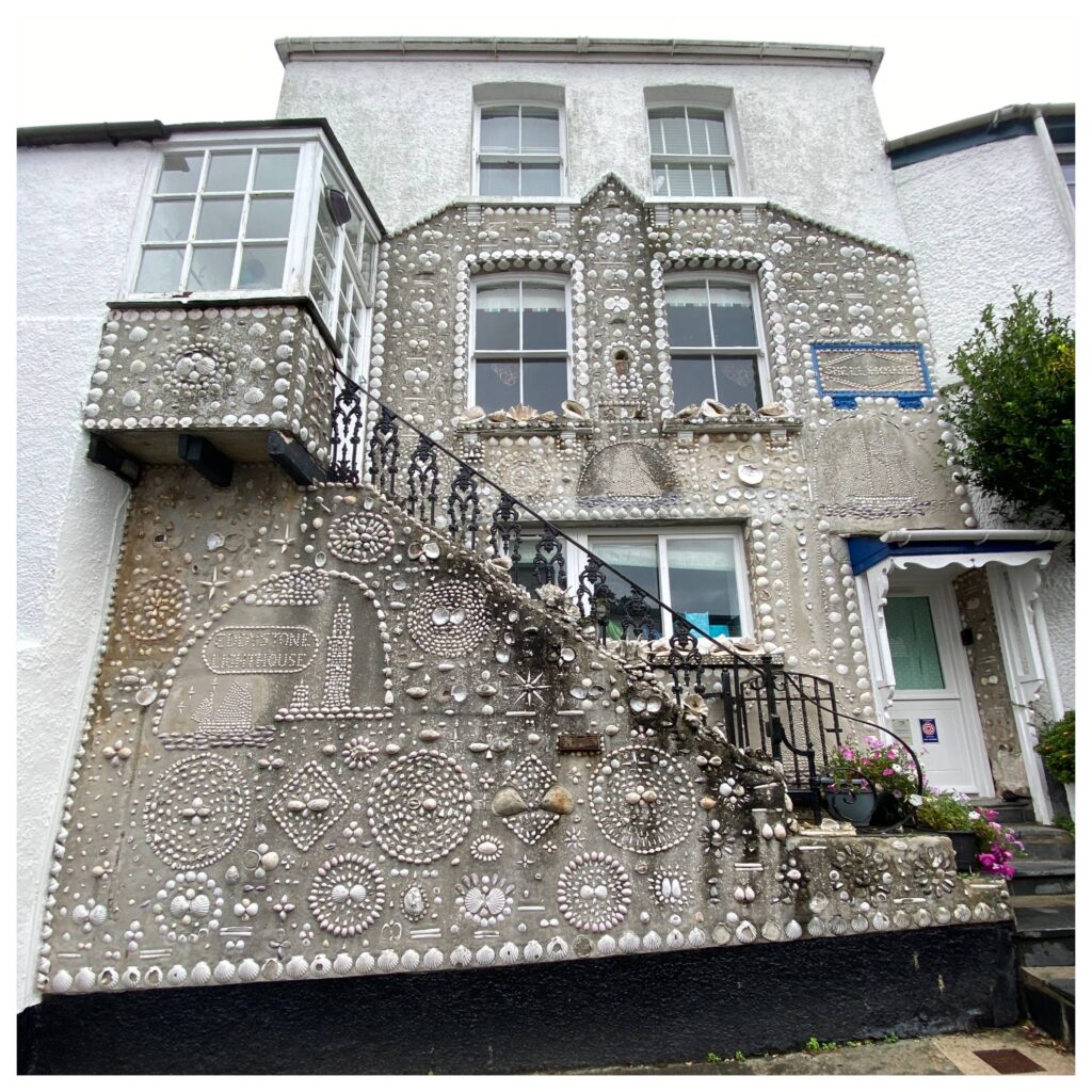 Eerst weer naar beneden helaas wel in de regen. In het dorp beneden even langs de winkel voor wat brood voor onderweg. Komen we langs een huis welke was versierd met schelpen. Omdat we beneden in het dorp waren moesten we zoals gewoonlijk ook weer naar boven :-).