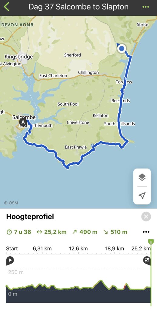 Onderweg kwamen we weer een aantal mensen tegen welke we even spraken. Zo hoorden we dat er een eindje verder een dorpje was dat is weggezakt in zee. Dit gebeurde doordat baggerschepen daar voor de kust de vaste grond hebben weggehaald voor de haven in Salcombe. En daardoor is de grond weggezakt en het hele dorp weggevaagd behalve 1 woning en daar heeft nog heel lang een dame alleen in gewoond. (Foto)
